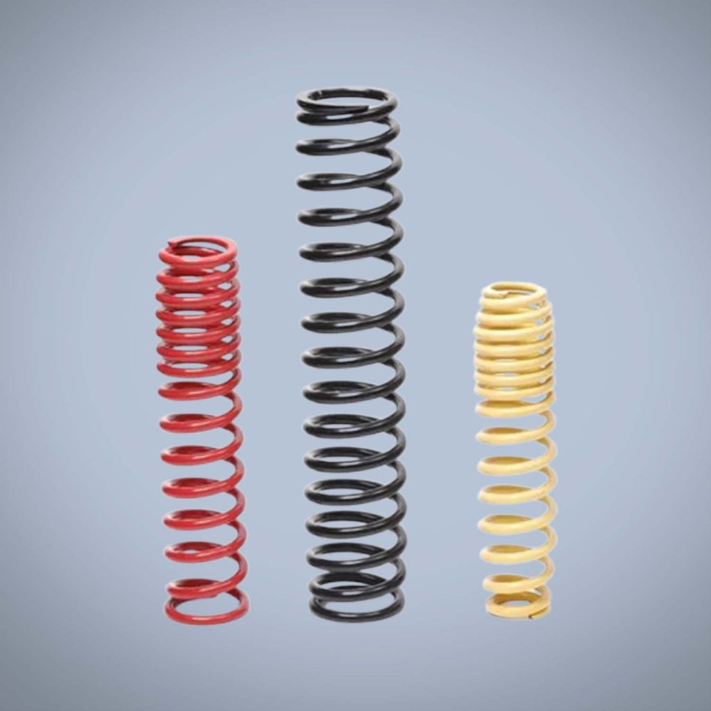 This factory custom spiral shock suspension compression spring is engineered to restore ride height, improve handling, and support increased loads in automotive and performance applications. Manufactured from high-strength alloy steel, each spring is heat treated, shot-peened, and finished with a durable powder coating for enhanced strength, fatigue resistance, and corrosion protection. Commonly used in independent front suspensions as well as select rear suspension systems, these coil springs offer advantages such as low weight, compact installation space, and maintenance-free operation without lubrication. Designed for motorsports, street performance, off-road, and powersports use, this suspension compression spring delivers reliable performance across automobiles, motorcycles, industrial equipment, and other demanding applications.