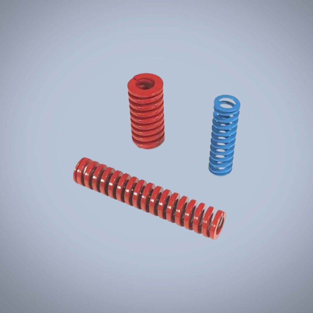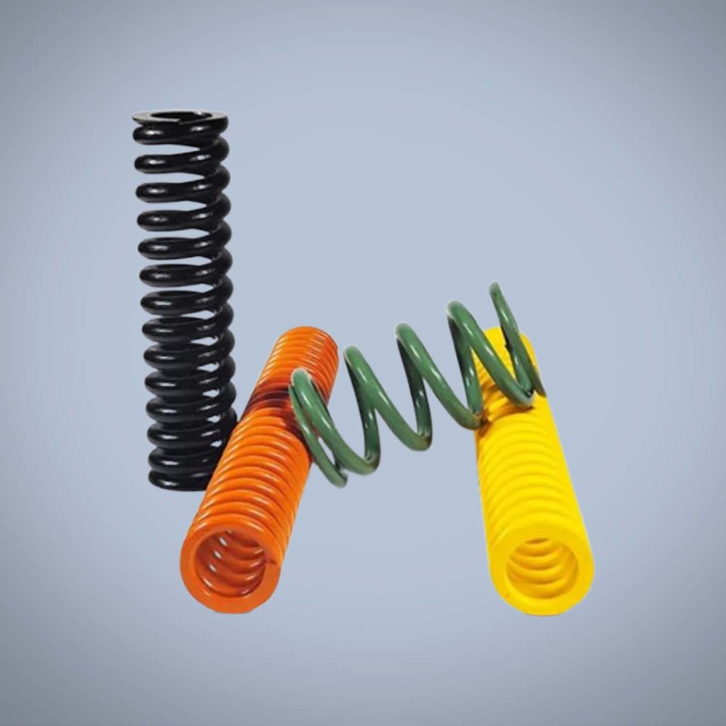 Custom industrial die compression springs are designed to provide stable clamping force and precise positioning in dies, molds, and fixtures, ensuring accurate and repeatable production results. Built for durability and consistent performance, these coil springs support vertical loads effectively while offering advantages such as compact installation, low weight, and maintenance-free operation without lubrication or sludge buildup. Commonly used in industrial tooling and mechanical systems, die compression springs help maintain alignment and force control, while working alongside guide mechanisms and shock absorbers where additional load direction or damping is required.
