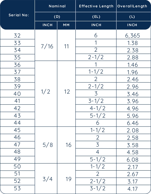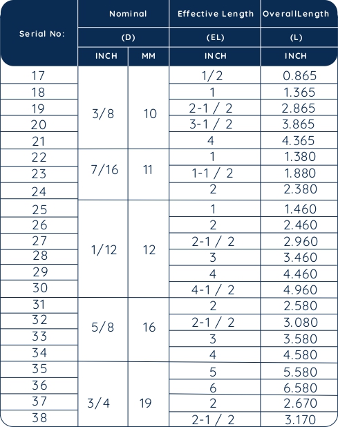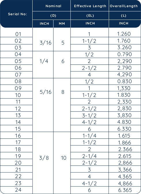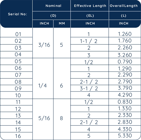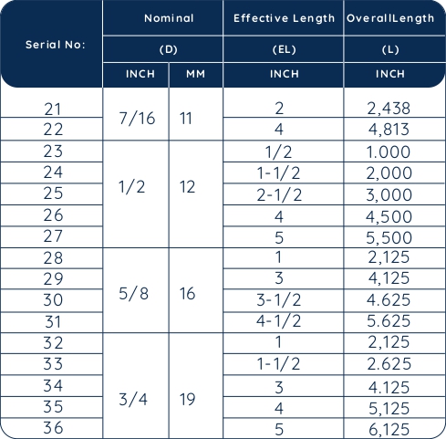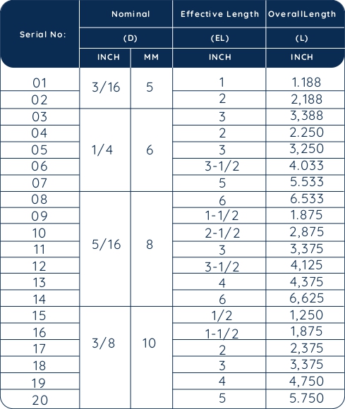 Sizes Available: Rod Dia 8 to 25MM, Length 60MM to 170MM
