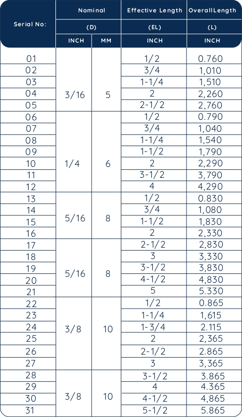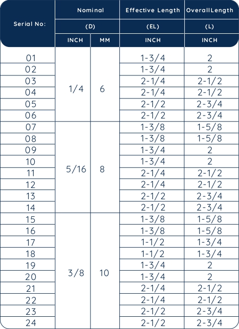 Usable Length: 2″(50MM) to 2.5″(63MM)