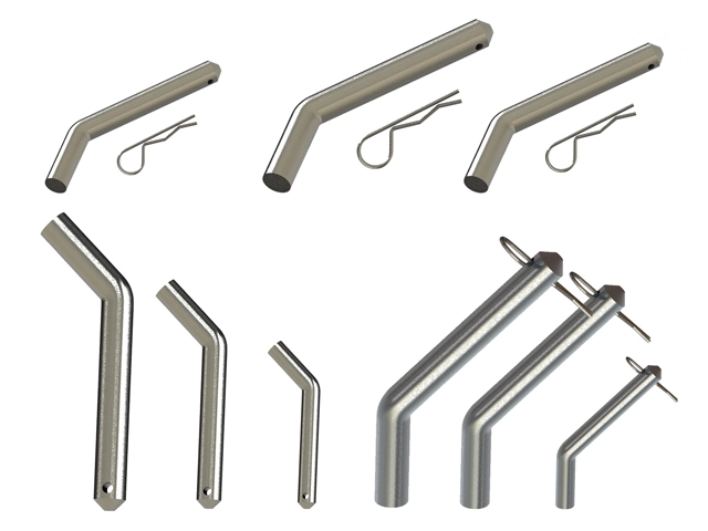 Bent hitch pins are essential components for securing trailer couplers and other hitching devices. These pins feature a durable, high-strength steel construction and a distinctive bent shape that allows for easy insertion and removal. They are often stainless and zinc-coated to resist rust and corrosion, ensuring longevity even in harsh weather conditions. Bent hitch pins come in various sizes to accommodate different hitch configurations and load requirements. Whether for agricultural, industrial, or recreational use, these pins provide a reliable and straightforward solution for securing hitch assemblies, offering peace of mind during transport and operations.